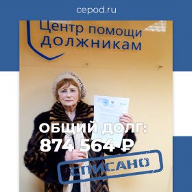 Елена Васильевна обратилась к нам с долгом 1,3 млн. руб. Долги накопились по 3 банкам и 26 МФО. Несколько дней назад мы передали Елене определение об окончании процедуры банкротства и освобождением от обязательств.